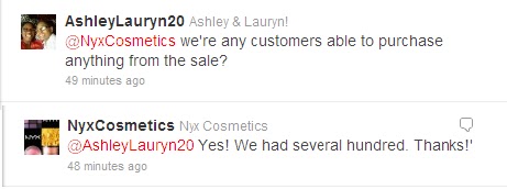 So let me get this straight. Out of oh say..56,337 facebook fans... NYX considers "several hundred" sales a success??? Really, because I just wanted 3 brozers for 3.60 instead of 36.00 and you weren't able to make that happen for me in the 12 hours I wasted of my life on your website.