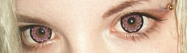 The lenses I chose were the Geo WT-A07. They are a matte rose pink with a thick black limbal ring for added intensity. They are quite large at 15mm, and are the largest pair I currently own. These lenses are rather thick and I would not recommend them for first time circle lens wearers. Some people do not like Geo lenses because of their thickness but I do not think they are especially uncomfortable. I also recommend due to their size to only wear these lenses no more that 4-5 hours at a time to avoid eye strain. It should go without saying that once your eyes begin to feel tired it is time to take out your lenses. I have to say that these lenses are absolutely beautiful in color. They look amazing over light and dark brown eyes!