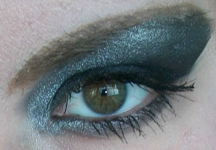 | A night look using a matte black pencil as an eye base, stake, legend, the true death, and nocturnal |