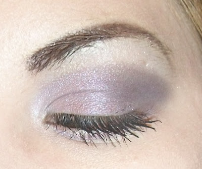 2. Take a light lavender shade and blend it from the inner corner into the center of the lid. I used Smurfling from the smurf collection- which is actually a pretty sparkly color so I just used a little bit. You can use it dry for a more subtle shine or wet if you'd like to see more of the sparkles. I used mine dry here.