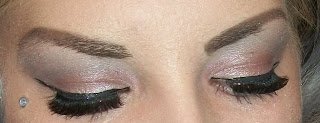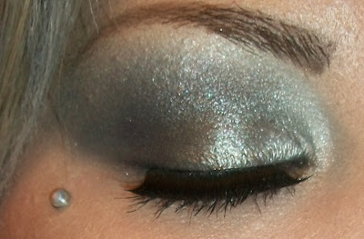 The makeup I chose was easy. A simple silver and black smokey eye. I used the two sparkly black shades in my Tarte pallet to make my crease, Then I packed on Abigail's Boutique Designs Hidden truth all over under the crease and on 2/3rd of the eyelid. I used this shade because it adds an iridescent navy blue sheen as well as some gold tones. The gold tones give the silver on top of it sort of an antiqued color. I packed on Starchild from the Tarina Tarantino Starchild Pallet all over the inner eye and lid. I finished my eyes off using MBA Snow Globe and ABD Ice Queen as a browbone highlight. I kept my blush and lipstick a peachy nude shade with some gold tones.